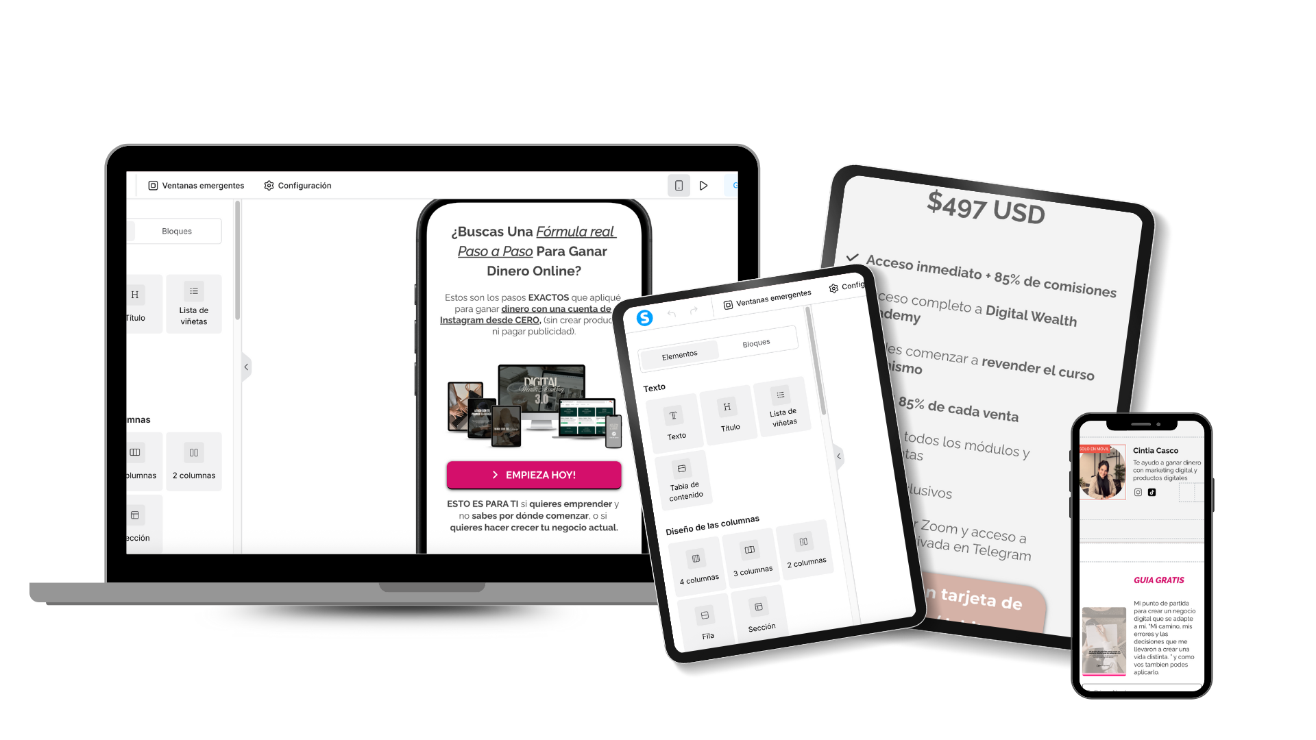 Aprendés cómo alojar el producto en plataformas digitales, configurar medios de cobro y automatizaciones, para que tu negocio empiece a funcionar incluso cuando no estás conectada con el sistema 360