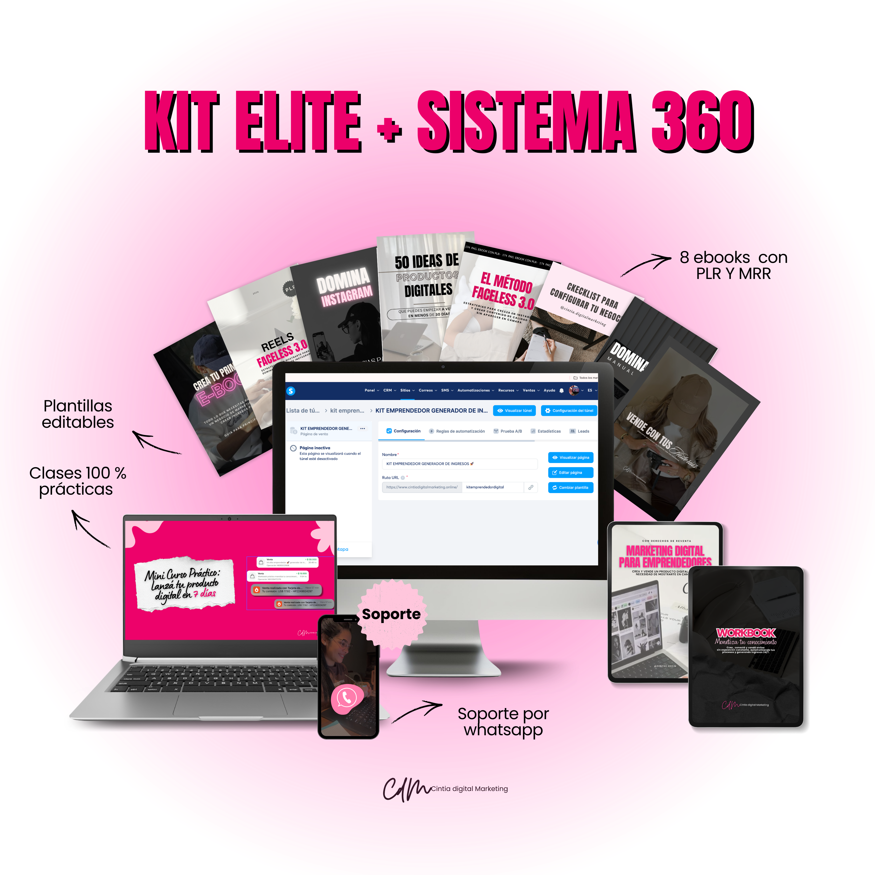 Con el Kit Elite + Método 360 aprenderás desde cero a crear tu propio producto digital en base a tu historia, tu conocimiento, tu proceso o profesión. Y si aún no sabés qué podrías hacer, también tenés 8 productos digitales ,aplicar y acelerar tu camino digital.